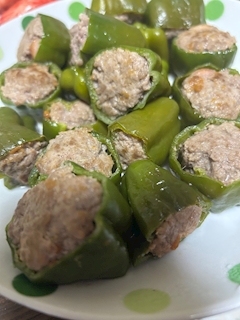 りかです🩵 ピーマン肉詰め(🫑•᎑•🫑) これにちょっとアレンジ加えて 柚子胡椒入れた((*゚Д゚)ゞデシ! 最高に美味(*´༥` *) 柚子胡椒ってなんでも合うから 絶対ストックしてる🤣 今日出勤してます🩵