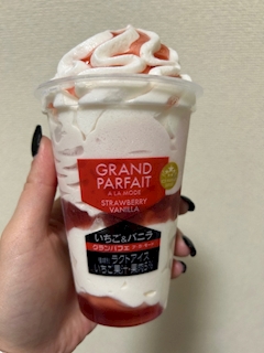 りかです🩵 夜中ってパフェコンビニで 食べれないからショック😭 代わりのアイスで我慢⁝( `ᾥ´ )⁝ いちごとチョコ両方買った(𓂂꜆◕⩊◕꜀𓂂) 今日出勤です🩵