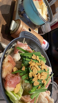 もつ鍋〜🍲✨ 昨日お店終わった後るあちゃんが鍋食べに連れてってくれました😆 鍋以外にサーモンユッケと親子丼とポテトも食べちゃいました🤤 おいしかった🥰 今日出勤です!✨